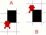 In picture A hero is covering part of wall, so hero looks like being closer to viewer then wall, but in the picture B part of the wall covers hero making hero standing further.